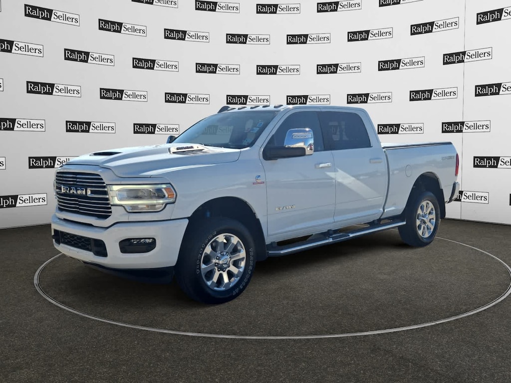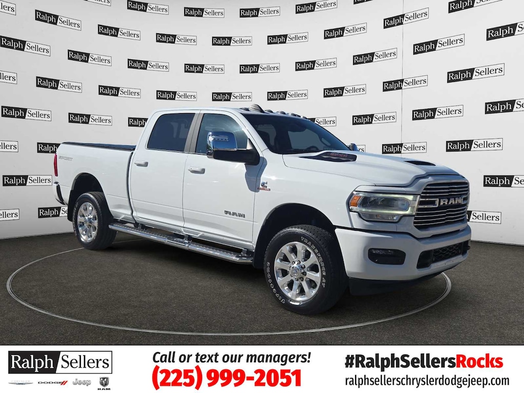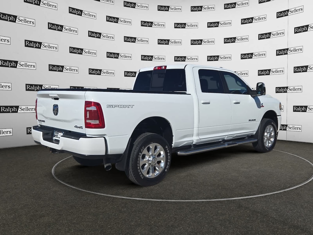 ENGINE: 6.7L I6 CUMMINS TURBO DIESEL Selective Catalytic Reduction (Urea), Dual 730 Amp Maintenance Free Batteries, Cummins Turbo Diesel Badge, Heavy Duty Engine Cooling, Supplemental Heater, 220 Amp Alternator, Tow Hooks, Diesel Exhaust Brake, Front Bumper Sight Shields, Capless Fuel Fill w/o Discriminator, SPORT APPEARANCE PACKAGE Body Color Grille Surround, Black Interior Accents, Sport Performance Hood, Sport Decal, Wheels: 20 x 8.0 Polished Aluminum, Tires: LT285/60R20E OWL On/Off Road, Center Hub, ParkSense Front/Rear Park Assist System, CHROME FLAT WHEEL-TO-WHEEL SIDE STEPS, BLACK, LEATHER TRIMMED BUCKET SEATS Bucket Seats, High Back Seats, Folding Flat Load Floor Storage, Full Length Upgraded Floor Console, ANTI-SPIN DIFFERENTIAL REAR AXLE, LARAMIE LEVEL 1 EQUIPMENT GROUP Blind Spot & Cross Path Detection, LED Tail Lamps, Power Adjustable Pedals w/Memory, For Details, Visit DriveUconnect.com, For More Info, Call 800-643-2112, 12 Touchscreen Display, Auto Power-Folding Mirrors, Front LED Fog Lamps, Mirror Running Lights, Alexa Built-In, Power Adjustable Convex Aux Mirrors, Forward & Reverse Utility Lights, Disassociated Touchscreen Display, Remote Tailgate Release, Center Hub, 2nd Row In Floor Storage Bins, Rear Window Defroster, Rain Sensitive Windshield Wipers, Rear Power Sliding Window, GPS Navigation, Auto Dim Exterior Mirror, SiriusXM w/360L, Connected Travel & Traffic Services, LED Reflector Headlamps, Foam Bottle Insert (Door Trim Panel), Off-Road Information Pages, Selectable Tire Fill Alert, Trailer Tow Pages, HD, TRANSMISSION: 6-SPEED AUTOMATIC (68RFE). Serviced here, Non-Smoker vehicle, Originally bought here.