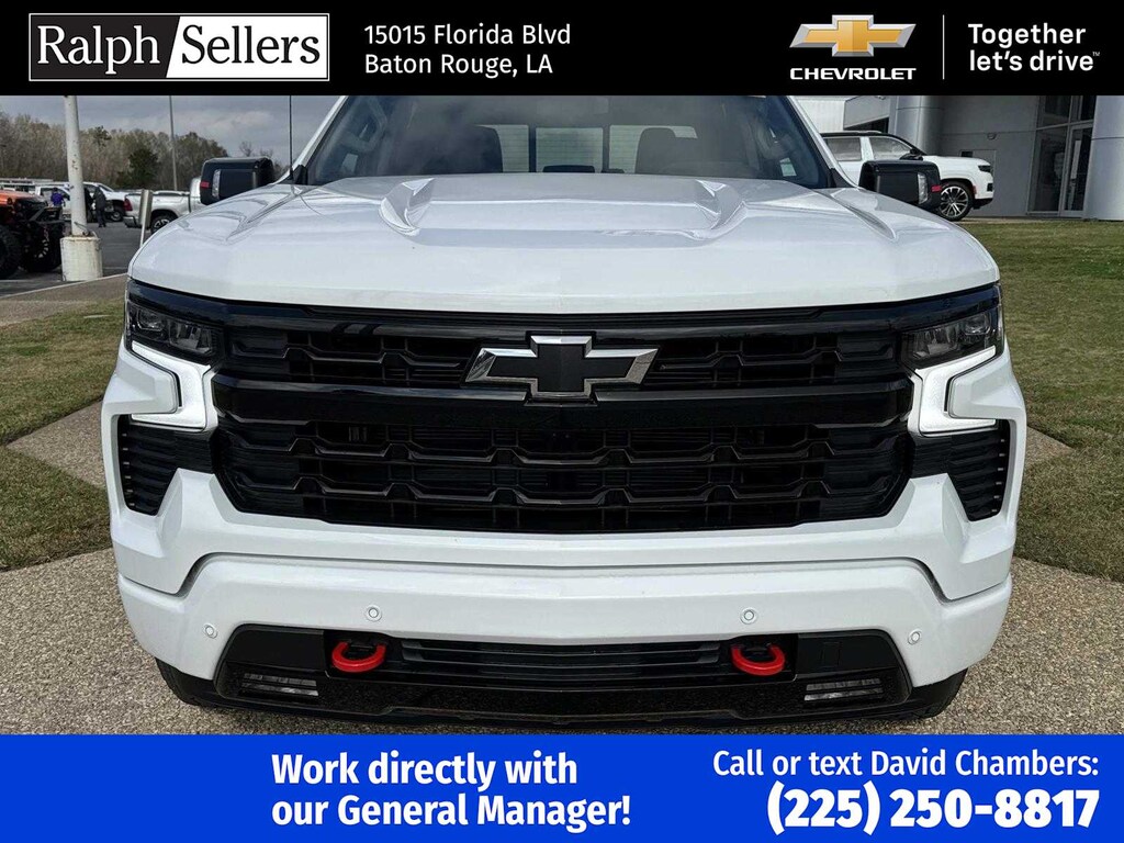 REDLINE EDITION includes high gloss Black door handles, high gloss Black grille, Black tailgate lettering, headlamp dark bezel, Black with Red outline Silverado emblems for fenders and tailgate, Black RST badge on tailgate, Red stripes on outside rearview mirrors, Black rectangular dual exhaust tips, (UGA) Red recovery hooks, (RPS) 20 High gloss Black painted aluminum wheels with Red stripes, (WPQ) Protection Package and (RVS) Black assist steps, LPO When ordered with (L87) 6.2L EcoTec3 V8 engine or (LZ0) Duramax 3.0L Turbo-Diesel I6 engine includes Black hood badging. ENGINE, 5.3L ECOTEC3 V8 (355 hp [265 kW] @ 5600 rpm, 383 lb-ft of torque [518 Nm] @ 4100 rpm); featuring available Dynamic Fuel Management that enables the engine to operate in 17 different patterns between 2 and 8 cylinders, depending on demand, to optimize power delivery and efficiency, CONVENIENCE PACKAGE II includes (UG1) Universal Home Remote, (A48) rear sliding power window, (PZ8) Hitch Guidance with Hitch View and (UET) Trailering App Includes (UQA) Bose Premium Sound System.), SAFETY PACKAGE includes (UV2) HD Surround Vision, (UD5) Front and Rear Park Assist, (TRG) Trailer Camera Provisions, (UKV) Trailer Side Blind Zone Alert, (UFB) Rear Cross Traffic Braking, (UKK) Rear Pedestrian Alert and (U12) Perimeter Lighting, PROTECTION PACKAGE includes (B1J) wheel house liners and (CGN) Chevytec spray-on bedliner, SEATS, FRONT BUCKET with center console (Includes (EPH) Electronic Transmission Range Selector (console mounted). LPO, ALL-WEATHER FLOOR LINERS 1st and 2nd rows on Crew Cab and Double Cab, (includes Chevrolet Bowtie logo), AUDIO SYSTEM, CHEVROLET INFOTAINMENT 3 PREMIUM SYSTEM with Google built-in compatibility (select service plan required, terms and limitations apply) including navigation capability, 13.4 diagonal HD color touchscreen, includes multi-touch display, AM/FM stereo, Bluetooth® streaming audio for music and most phones; featuring Wireless Apple CarPlay® and Wireless Android Auto® capability for compatible phones, advanced voice recognition, in-vehicle apps, personalized profiles for infotainment and vehicle settings (STD), TRANSMISSION, 10-SPEED AUTOMATIC with Electronic Transmission Range Selector, (ETRS), electronically controlled with overdrive, tow/haul mode and steering column paddle shifters. Includes Cruise Grade Braking and Powertrain Grade Braking, SEAT, UP-LEVEL REAR WITH STORAGE PACKAGE 60/40 folding bench for Crew Cab models, includes full-length bench seat, seatback storage on left and right side, center fold out armrest with 2 cupholders, full cab width under-seat storage, (includes child seat top tether anchor).