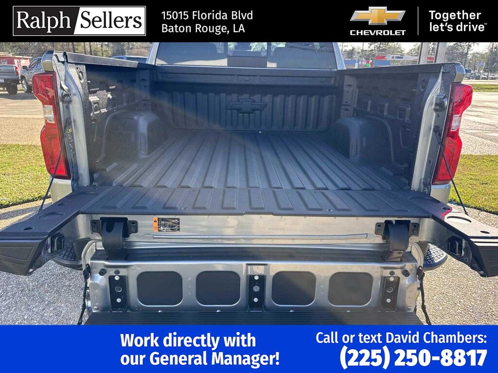 ENGINE, DURAMAX 3.0L TURBO-DIESEL I6 (305 hp [227 kW] @ 3750 rpm, 495 lb-ft of torque [671 Nm] @ 2750 rpm) Includes (KW5) 220-amp alternator, (K05) engine block heater and (N10) dual exhaust.), CONVENIENCE PACKAGE II includes (UG1) Universal Home Remote, (A48) rear sliding power window, (PZ8) Hitch Guidance with Hitch View and (UET) Trailering App Includes (UQA) Bose Premium Sound System. SAFETY PACKAGE includes (UV2) HD Surround Vision, (UD5) Front and Rear Park Assist, (TRG) Trailer Camera Provisions, (UKV) Trailer Side Blind Zone Alert, (UFB) Rear Cross Traffic Braking, (UKK) Rear Pedestrian Alert and (U12) Perimeter Lighting, LPO, ASSIST STEPS - 4 BLACK - ROUND (dealer-installed), PROTECTION PACKAGE includes (B1J) wheel house liners and (CGN) Chevytec spray-on bedliner, SEATS, FRONT BUCKET with center console (Includes (EPH) Electronic Transmission Range Selector (console mounted). TAILGATE, MULTI-FLEX with six functional load/access features, NOTE: Auto release can be disabled if ball hitch is installed. See Owners manual for details, AUDIO SYSTEM, CHEVROLET INFOTAINMENT 3 PREMIUM SYSTEM with Google built-in compatibility (select service plan required, terms and limitations apply) including navigation capability, 13.4 diagonal HD color touchscreen, includes multi-touch display, AM/FM stereo, Bluetooth® streaming audio for music and most phones; featuring Wireless Apple CarPlay® and Wireless Android Auto® capability for compatible phones, advanced voice recognition, in-vehicle apps, personalized profiles for infotainment and vehicle settings (STD), TRANSMISSION, 10-SPEED AUTOMATIC with Electronic Transmission Range Selector (ETRS), electronically controlled with overdrive, tow/haul mode and steering column paddle shifters. Includes Cruise Grade Braking and Powertrain Grade Braking, SEAT, UP-LEVEL REAR WITH STORAGE PACKAGE 60/40 folding bench for Crew Cab models, includes full-length bench seat, seatback storage on left and right side, center fold out armrest with 2 cupholders, full cab width under-seat storage, (includes child seat top tether anchor).