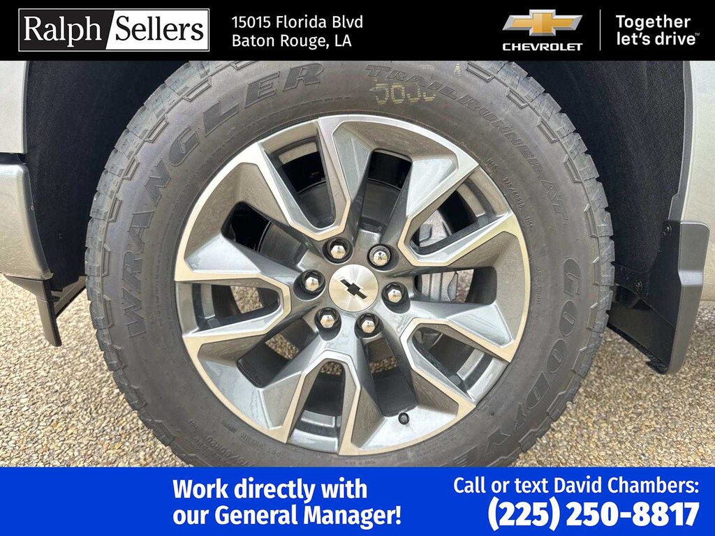 ENGINE, 6.2L ECOTEC3 V8 (420 hp [313 kW] @ 5600 rpm, 460 lb-ft of torque [624 Nm] @ 4100 rpm); featuring Dynamic Fuel Management that enables the engine to operate in 17 different patterns between 2 and 8 cylinders, depending on demand, to optimize power delivery and efficiency, Z71 OFF-ROAD PACKAGE includes (Z71) Off-Road suspension, (JHD) Hill Descent Control, (NZZ) skid plates and (K47) heavy-duty air filter Includes Z71 hard badge, (N10) dual exhaust, (RCV) 18 bright silver painted wheels, (XCK) 265/65R18 all-terrain, blackwall tires and (NQH) 2-speed transfer case. CONVENIENCE PACKAGE II includes (UG1) Universal Home Remote, (A48) rear sliding power window, (PZ8) Hitch Guidance with Hitch View and (UET) Trailering App Includes (UQA) Bose Premium Sound System.), SAFETY PACKAGE includes (UV2) HD Surround Vision, (UD5) Front and Rear Park Assist, (TRG) Trailer Camera Provisions, (UKV) Trailer Side Blind Zone Alert, (UFB) Rear Cross Traffic Braking, (UKK) Rear Pedestrian Alert and (U12) Perimeter Lighting, PROTECTION PACKAGE includes (B1J) wheel house liners and (CGN) Chevytec spray-on bedliner, SEATS, FRONT BUCKET with center console (Includes (EPH) Electronic Transmission Range Selector (console mounted). AUDIO SYSTEM, CHEVROLET INFOTAINMENT 3 PREMIUM SYSTEM with Google built-in compatibility (select service plan required, terms and limitations apply) including navigation capability, 13.4 diagonal HD color touchscreen, includes multi-touch display, AM/FM stereo, Bluetooth® streaming audio for music and most phones; featuring Wireless Apple CarPlay® and Wireless Android Auto® capability for compatible phones, advanced voice recognition, in-vehicle apps, personalized profiles for infotainment and vehicle settings (STD), TRANSMISSION, 10-SPEED AUTOMATIC with Electronic Transmission Range Selector, (ETRS), electronically controlled with overdrive, tow/haul mode and steering column paddle shifters. Includes Cruise Grade Braking and Powertrain Grade Braking, SEAT, UP-LEVEL REAR WITH STORAGE PACKAGE 60/40 folding bench for Crew Cab models, includes full-length bench seat, seatback storage on left and right side, center fold out armrest with 2 cupholders, full cab width under-seat storage, (includes child seat top tether anchor).