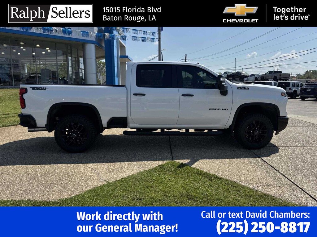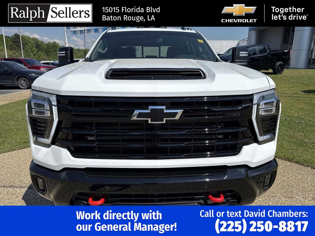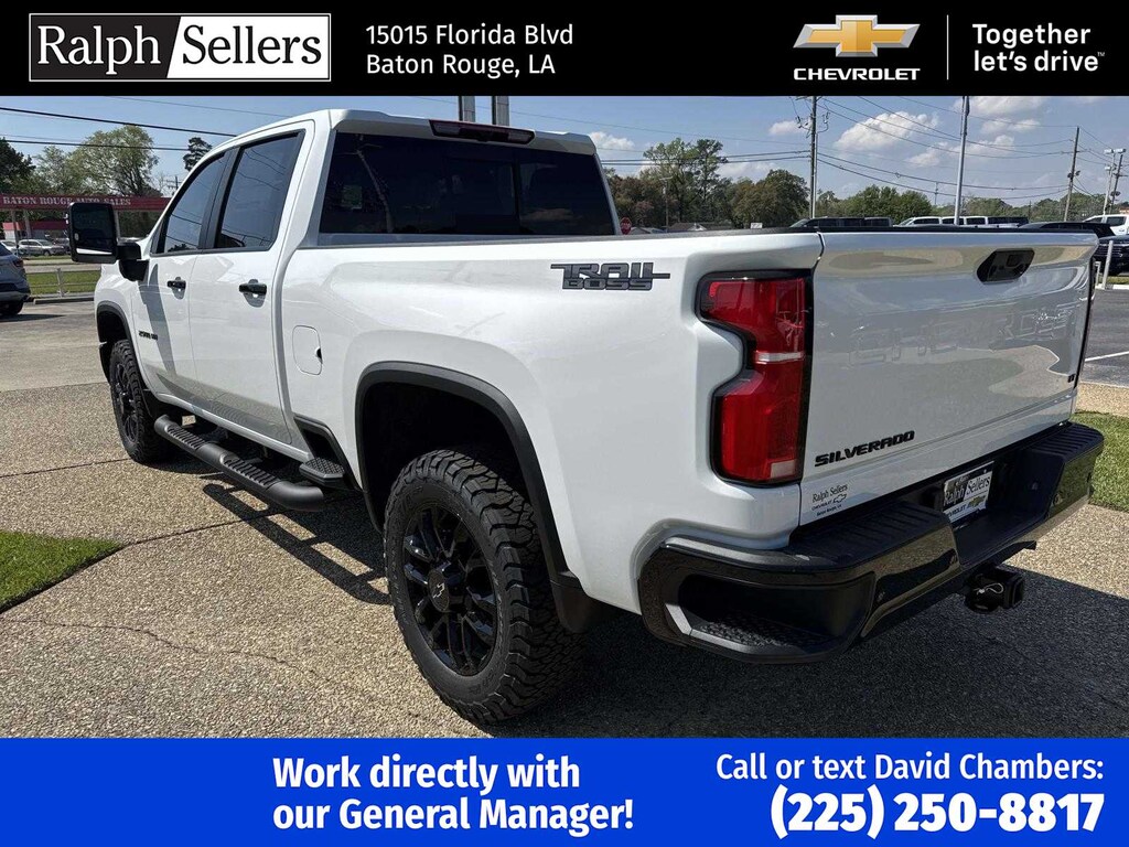 ENGINE, DURAMAX 6.6L TURBO-DIESEL V8 B20-Diesel compatible, (470 hp [350.5 kW] @ 2800 rpm, 975 lb-ft of torque [1322 Nm] @ 1600 rpm), TRAIL BOSS PACKAGE Includes black grille bar with Chevy Black Bow Tie, Black grille inserts, (SRI) 20 High gloss Black painted wheels, (VB5) High Gloss Black painted front bumper, (VT5) High Gloss Black painted rear bumper, (UGA) Red Tow Hooks, (QFG) LT275/65R20 BF Goodrich off-road tires, Black skid plate, Black badging, Black bowtie on horn pad, (DP6) High Gloss Black mirror caps, Black hood vent surround, High Gloss Black door handles and (CGN) Chevytec spray-on bedliner. Includes high-intensity LED headlamps and (DWI) trailer mirrors. SAFETY PACKAGE includes (UD5) Front and Rear Park Assist, (UKV) Trailer Side Blind Zone Alert, (UFG) Rear Cross Traffic Alert, (UV2) HD Surround Vision, (UVN) Bed View Camera and (TRG) Trailer Camera Provisions (Includes (UET) Trailering App. CONVENIENCE PACKAGE includes (UF2) Cargo bed LED lighting, (CJ2) dual-zone automatic climate control, (A2X) 10-way power driver seat including power lumbar, (N37) manual tilt/telescoping steering column, (T3U) LED fog lamps, LPO, ASSIST STEPS - 4 BLACK - ROUND (dealer-installed), SEATS, FRONT BUCKET with center console, for Crew Cab and Double Cab models, CONVENIENCE PACKAGE II includes (PZ8) Hitch Guidance with Hitch View, (UET) Trailering App, (A48) rear sliding power window and (UG1) Universal Home Remote. Includes (R7O) Cloth Rear Seat with Storage Package. REMOTE START PACKAGE includes (BTV) Remote Start, (UTJ) Theft Deterrent System and (C49) rear-window defogger, Z71 OFF-ROAD PACKAGE includes (Z71) Off-Road suspension with off-road tuned twin tube Rancho shocks, (JHD) Hill Descent Control and (NZZ) skid plates (transfer case and oil pan) (Includes (QXT) LT265/70R17 all-terrain, blackwall tires and molded in color Black grille. MIRRORS, OUTSIDE POWER-ADJUSTABLE VERTICAL TRAILERING WITH HEATED AND AUTO-DIMMING UPPER GLASS lower convex mirrors, turn signal indicators, puddle lamps, (U12) perimeter lighting, auxiliary lighting, power folding/manual extending (extends 3.31 [84.25mm]) Includes (DD8) auto-dimming rearview mirror which can be upgraded to (DRZ) Rear Camera Mirror.), HEAT PACKAGE includes (KA1) Heated driver and passenger seats and (KI3) Heated steering wheel, LPO, ALL-WEATHER FLOOR LINERS 1st and 2nd rows, (includes Z71 logo on front mats), AUDIO SYSTEM, CHEVROLET INFOTAINMENT 3 PREMIUM SYSTEM with Google built-in compatibility (select service plan required, terms and limitations apply) including navigation capability, 13.4 diagonal HD color touchscreen, includes multi-touch display, AM/FM stereo, Bluetooth® streaming audio for music and most phones; featuring Wireless Apple CarPlay® and Wireless Android Auto® capability for compatible phones, advanced voice recognition, in-vehicle apps, personalized profiles for infotainment and vehicle settings (STD), TRANSMISSION, 10-SPEED AUTOMATIC, SEAT, UP-LEVEL REAR WITH STORAGE PACKAGE 60/40 Split rear seat with center armrest, right, and left seat back storage, and under seat jack storage (Crew Cabs Only) Rear seat leather appointed.