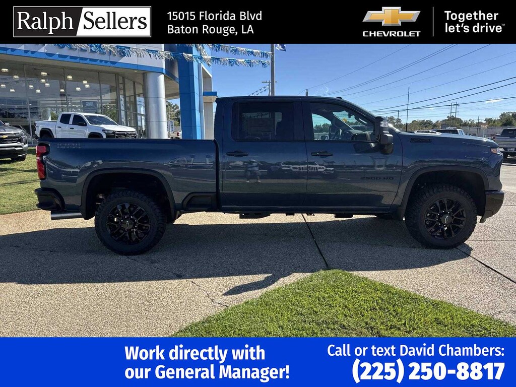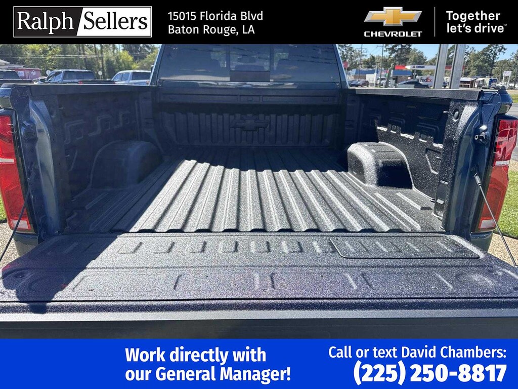 ENGINE, DURAMAX 6.6L TURBO-DIESEL V8 B20-Diesel compatible, (470 hp [350.5 kW] @ 2800 rpm, 975 lb-ft of torque [1322 Nm] @ 1600 rpm), TRAIL BOSS PACKAGE Includes black grille bar with Chevy Black Bow Tie, Black grille inserts, (SRI) 20 High gloss Black painted wheels, (VB5) High Gloss Black painted front bumper, (VT5) High Gloss Black painted rear bumper, (UGA) Red Tow Hooks, (QFG) LT275/65R20 BF Goodrich off-road tires, Black skid plate, Black badging, Black bowtie on horn pad, (DP6) High Gloss Black mirror caps, Black hood vent surround, High Gloss Black door handles and (CGN) Chevytec spray-on bedliner. Includes high-intensity LED headlamps and (DWI) trailer mirrors. SAFETY PACKAGE includes (UD5) Front and Rear Park Assist, (UKV) Trailer Side Blind Zone Alert, (UFG) Rear Cross Traffic Alert, (UV2) HD Surround Vision, (UVN) Bed View Camera and (TRG) Trailer Camera Provisions (Includes (UET) Trailering App. CONVENIENCE PACKAGE includes (UF2) Cargo bed LED lighting, (CJ2) dual-zone automatic climate control, (A2X) 10-way power driver seat including power lumbar, (N37) manual tilt/telescoping steering column, (T3U) LED fog lamps, SEATS, FRONT BUCKET with center console, for Crew Cab and Double Cab models, CONVENIENCE PACKAGE II includes (PZ8) Hitch Guidance with Hitch View, (UET) Trailering App, (A48) rear sliding power window and (UG1) Universal Home Remote. Includes (R7O) Cloth Rear Seat with Storage Package. REMOTE START PACKAGE includes (BTV) Remote Start, (UTJ) Theft Deterrent System and (C49) rear-window defogger, Z71 OFF-ROAD PACKAGE includes (Z71) Off-Road suspension with off-road tuned twin tube Rancho shocks, (JHD) Hill Descent Control and (NZZ) skid plates (transfer case and oil pan) (Includes (QXT) LT265/70R17 all-terrain, blackwall tires and molded in color Black grille. MIRRORS, OUTSIDE POWER-ADJUSTABLE VERTICAL TRAILERING WITH HEATED AND AUTO-DIMMING UPPER GLASS lower convex mirrors, turn signal indicators, puddle lamps, (U12) perimeter lighting, auxiliary lighting, power folding/manual extending (extends 3.31 [84.25mm]) Includes (DD8) auto-dimming rearview mirror which can be upgraded to (DRZ) Rear Camera Mirror.), HEAT PACKAGE includes (KA1) Heated driver and passenger seats and (KI3) Heated steering wheel, LPO, ALL-WEATHER FLOOR LINERS 1st and 2nd rows, (includes Z71 logo on front mats), AUDIO SYSTEM, CHEVROLET INFOTAINMENT 3 PREMIUM SYSTEM with Google built-in compatibility (select service plan required, terms and limitations apply) including navigation capability, 13.4 diagonal HD color touchscreen, includes multi-touch display, AM/FM stereo, Bluetooth® streaming audio for music and most phones; featuring Wireless Apple CarPlay® and Wireless Android Auto® capability for compatible phones, advanced voice recognition, in-vehicle apps, personalized profiles for infotainment and vehicle settings (STD), TRANSMISSION, 10-SPEED AUTOMATIC, SEAT, UP-LEVEL REAR WITH STORAGE PACKAGE 60/40 Split rear seat with center armrest, right, and left seat back storage, and under seat jack storage (Crew Cabs Only) Rear seat leather appointed.