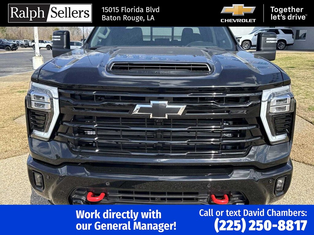 ENGINE, DURAMAX 6.6L TURBO-DIESEL V8 B20-Diesel compatible, (470 hp [350.5 kW] @ 2800 rpm, 975 lb-ft of torque [1322 Nm] @ 1600 rpm), TRAIL BOSS PACKAGE Includes black grille bar with Chevy Black Bow Tie, Black grille inserts, (SRI) 20 High gloss Black painted wheels, (VB5) High Gloss Black painted front bumper, (VT5) High Gloss Black painted rear bumper, (UGA) Red Tow Hooks, (QFG) LT275/65R20 BF Goodrich off-road tires, Black skid plate, Black badging, Black bowtie on horn pad, (DP6) High Gloss Black mirror caps, Black hood vent surround, High Gloss Black door handles and (CGN) Chevytec spray-on bedliner. Includes high-intensity LED headlamps and (DWI) trailer mirrors. SAFETY PACKAGE includes (UD5) Front and Rear Park Assist, (UKV) Trailer Side Blind Zone Alert, (UFG) Rear Cross Traffic Alert, (UV2) HD Surround Vision, (UVN) Bed View Camera and (TRG) Trailer Camera Provisions (Includes (UET) Trailering App. CONVENIENCE PACKAGE includes (UF2) Cargo bed LED lighting, (CJ2) dual-zone automatic climate control, (A2X) 10-way power driver seat including power lumbar, (N37) manual tilt/telescoping steering column, (T3U) LED fog lamps, LPO, ASSIST STEPS - 4 BLACK - ROUND (dealer-installed), SEATS, FRONT BUCKET with center console, for Crew Cab and Double Cab models, CONVENIENCE PACKAGE II includes (PZ8) Hitch Guidance with Hitch View, (UET) Trailering App, (A48) rear sliding power window and (UG1) Universal Home Remote. Includes (R7O) Cloth Rear Seat with Storage Package. REMOTE START PACKAGE includes (BTV) Remote Start, (UTJ) Theft Deterrent System and (C49) rear-window defogger, Z71 OFF-ROAD PACKAGE includes (Z71) Off-Road suspension with off-road tuned twin tube Rancho shocks, (JHD) Hill Descent Control and (NZZ) skid plates (transfer case and oil pan) (Includes (QXT) LT265/70R17 all-terrain, blackwall tires and molded in color Black grille. MIRRORS, OUTSIDE POWER-ADJUSTABLE VERTICAL TRAILERING WITH HEATED AND AUTO-DIMMING UPPER GLASS lower convex mirrors, turn signal indicators, puddle lamps, (U12) perimeter lighting, auxiliary lighting, power folding/manual extending (extends 3.31 [84.25mm]) Includes (DD8) auto-dimming rearview mirror which can be upgraded to (DRZ) Rear Camera Mirror.), HEAT PACKAGE includes (KA1) Heated driver and passenger seats and (KI3) Heated steering wheel, LPO, ALL-WEATHER FLOOR LINERS 1st and 2nd rows, (includes Z71 logo on front mats), AUDIO SYSTEM, CHEVROLET INFOTAINMENT 3 PREMIUM SYSTEM with Google built-in compatibility (select service plan required, terms and limitations apply) including navigation capability, 13.4 diagonal HD color touchscreen, includes multi-touch display, AM/FM stereo, Bluetooth® streaming audio for music and most phones; featuring Wireless Apple CarPlay® and Wireless Android Auto® capability for compatible phones, advanced voice recognition, in-vehicle apps, personalized profiles for infotainment and vehicle settings (STD), TRANSMISSION, 10-SPEED AUTOMATIC, SEAT, UP-LEVEL REAR WITH STORAGE PACKAGE 60/40 Split rear seat with center armrest, right, and left seat back storage, and under seat jack storage (Crew Cabs Only) Rear seat leather appointed.