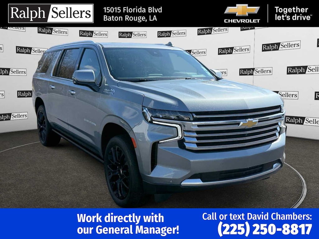 HIGH COUNTRY DELUXE includes (C3U) Panoramic power sunroof, (NHT) Max Trailering Package, (B3L) power-retractable assist steps with perimeter lighting and (F47) Air Ride Adaptive suspension, LPO, 22 (55.9 CM) MULTI-SPOKE GLOSS BLACK WHEELS LPO wheels will come with 4 steel 22 wheels from the factory with alignment specs set to 22 LPO wheel selected (dealer-installed) (Includes factory-installed wheel locks and not (SFE) wheel locks, LPO. REAR SEAT MEDIA SYSTEM includes dual rear seat-mounted 12.6 diagonal color-touch LCD HD screens, Wi-Fi wireless projection capability, two Bluetooth® headphones with 2 HDMI ports on the back of the center console, SUSPENSION, AIR RIDE ADAPTIVE, ADAPTIVE CRUISE CONTROL (Beginning with start of production through October 2, 2022, vehicles will be forced to include (07Z) Not Equipped with Adaptive Cruise Control and Enhanced Automatic Emergency Braking, which removes Adaptive Cruise Control and Enhanced Automatic Emergency Braking. Vehicles will instead include Electronic Cruise Control and Automatic Emergency Braking. See dealer for details or the window label for the features on a specific vehicle.), AUDIO SYSTEM, CHEVROLET INFOTAINMENT 3 PREMIUM SYSTEM WITH GOOGLE BUILT-IN 10.2 diagonal HD color touchscreen, includes multi-touch display, AM/FM stereo, Bluetooth® streaming audio for music and most phones; featuring wireless Android Auto® and Apple CarPlay® capability for compatible phones, advanced voice recognition, in-vehicle apps, personalized profiles for infotainment and vehicle settings.) (STD), ENGINE, 6.2L ECOTEC3 V8 with Dynamic Fuel Management, Direct Injection and Variable Valve Timing, includes aluminum block construction (420 hp [313 kW] @ 5600 rpm, 460 lb-ft of torque [624 Nm] @ 4100 rpm) (STD), TRANSMISSION, 10-SPEED AUTOMATIC electronically controlled with overdrive, includes Traction Select System including tow/haul (Standard with (L87) 6.2L EcoTec3 V8 engine only.) (STD), ADVANCED TRAILERING PACKAGE includes (PZ8) Hitch Guidance with Hitch View, (JL1) trailer brake controller and (UET) Smart Trailer Integration Indicator Also includes (UKV) Extended Side Blind Zone Alert.).